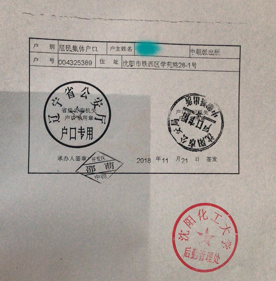 沈阳化工大学(如毕业生已经具备户口迁出所需的全部材料可不必来学校办理业务,直接略过学校步骤,去派出所办理手续即可),如无集体户口本人页或集体户口公共主页应到学校办理相关业务。